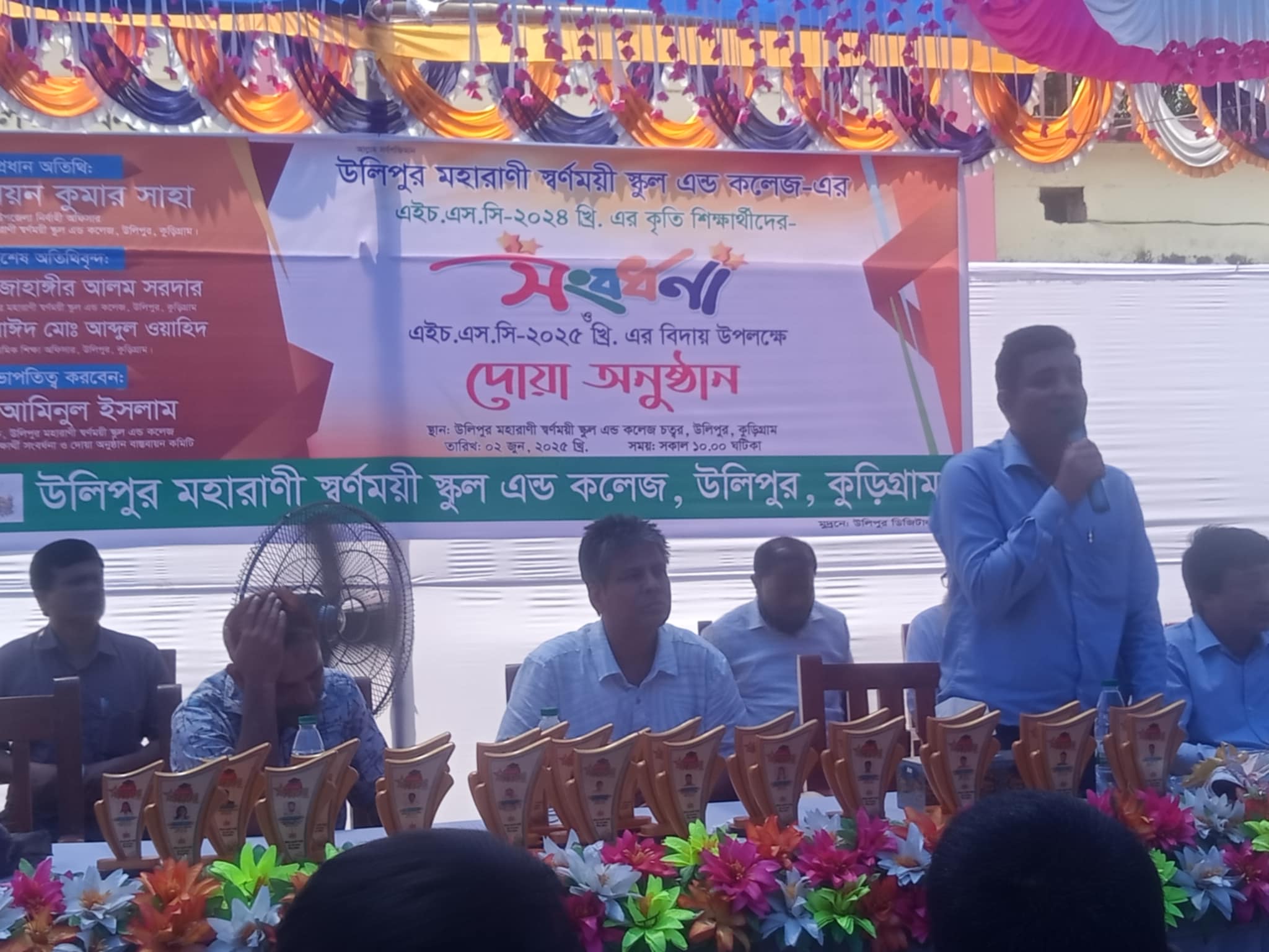 উলিপুর মহারানী স্বর্ণময়ী স্কুল অ্যান্ড কলেজে এইচএসসি ২০২৪ সালের কৃতি শিক্ষার্থীদের সংবর্ধনা এবং ২০২৫ সালের পরীক্ষার্থীদের বিদায় ও দোয়া মাহফিল অনুষ্ঠিত হয়েছে।