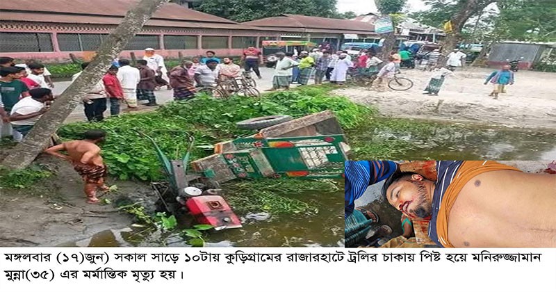 নিউজ ডেস্ক: গাঁয়ে হলুদ না দিতেই সড়কেই ঝড়ে গেল কুড়িগ্রামের রাজারহাটে এক যুবকের প্রাণ। এ সপ্তাহেই গাঁয়ের হলুদের অনুষ্ঠান হওয়ার কথা ছিল ওই যুবকের। কিন্তু বিধাতার নির্মম পরিহাস মঙ্গলবার(১৭জুন) সকাল সাড়ে ১০টায় কুড়িগ্রামের রাজারহাটের নাজিমখান বাজারের পাশে সাকিন মজিদ মেমোরিয়াল হাসপাতালের সামনে ট্রলির চাকায় পিষ্ট হয়ে মারা যায় বর মোটরসাইকেল চালক মনিরুজ্জামান মুন্না(৩৫)।