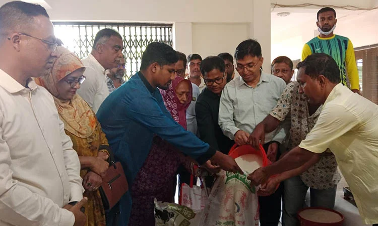 আজ সোমবার সকালে পৌরসভা চত্বরে চাল বিতরণ কর্মসূচি উদ্বোধন করেন নীলফামারীর জেলা প্রশাসক মোহাম্মদ নায়িরুজ্জামান।