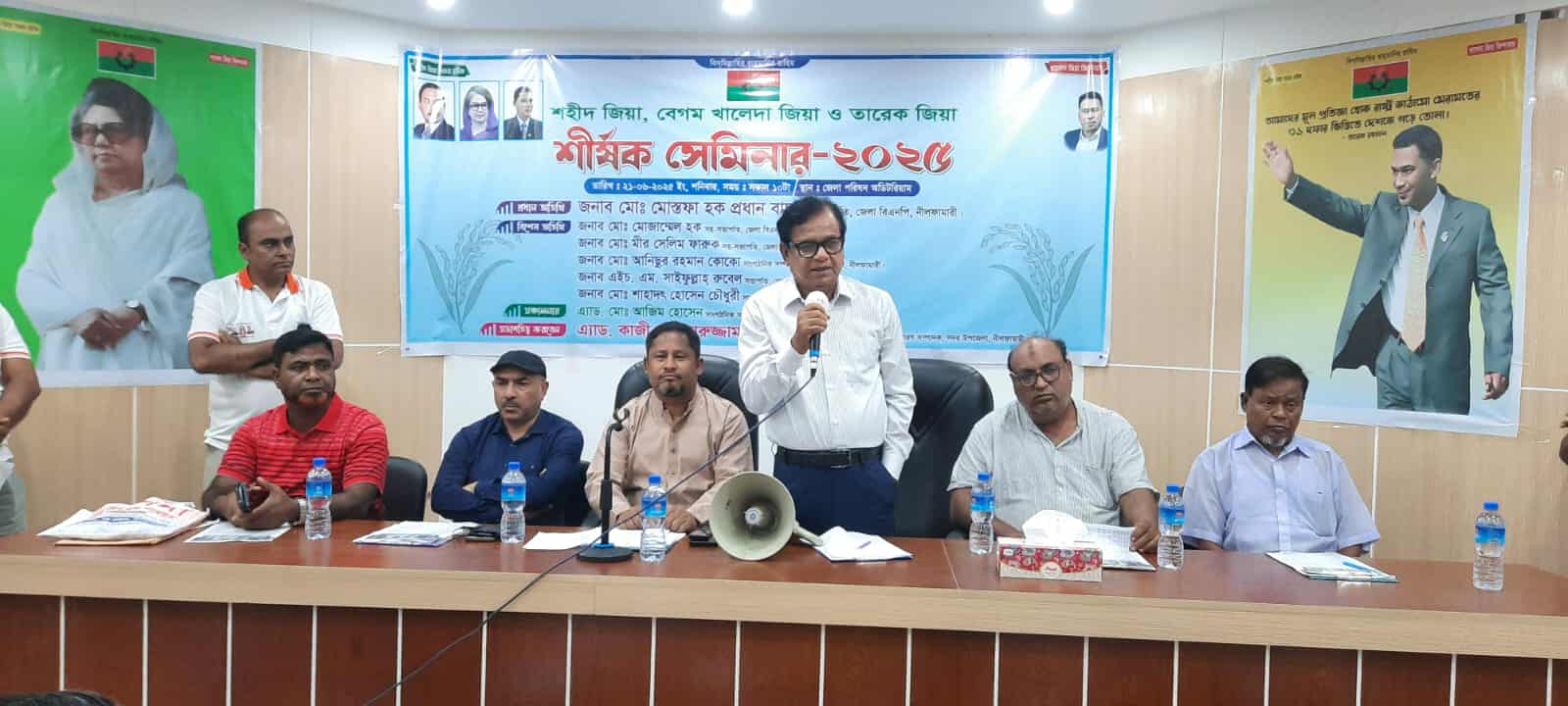 জেলা বিএনপির যুগ্ম সম্পাদক ও সদর উপজেলা বিএনপির সাধারণ সম্পাদক অ্যাডভোকেট কাজী আখতারুজ্জামান জুয়েলের সভাপতিত্বে অন্যান্যদের মধ্যে বক্তব্য রাখেন জেলা বিএনপির সহ-সভাপতি মোজাম্মেল হক ও মীর সেলিম ফারুক, সাংগঠনিক সম্পাদক আনিছুর রহমান কোকো, সহ দপ্তর সম্পাদক আব্দুর রহিম, সদস্য আহম্মেদ আলী বাবুসহ আরো অনেকে। সেমিনারটি পরিচালনা করেন সদর উপজেলা বিএনপির সাংগঠনিক সম্পাদক অ্যাডভোকেট আজিম হোসেন। এসময় বক্তারা শহীদ জিয়ার স্বাধীনতা-উত্তর বাংলাদেশে রাষ্ট্রীয় পুনর্গঠন ও আত্মনির্ভরশীল অর্থনীতির দর্শনের ওপর গুরুত্বারোপ করেন। একই সঙ্গে বেগম খালেদা জিয়ার নেতৃত্বে স্বৈরাচার বিরোধী আন্দোলন এবং গণতন্ত্র প্রতিষ্ঠায় তার অবদানের কথাও স্মরণ করা হয়। তারেক রহমানের ৩১ দফা নিয়ে আলোচনায় বক্তারা বলেন, এই দফাগুলোর মধ্যে রয়েছে দুর্নীতিমুক্ত প্রশাসন, শক্তিশালী স্থানীয় সরকার ব্যবস্থা, যুগোপযোগী শিক্ষা সংস্কার ও অর্থনৈতিক বিকাশের রূপরেখা।