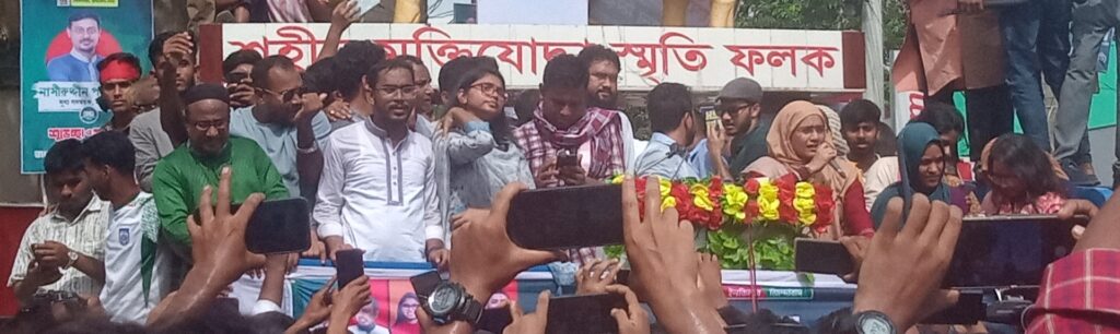 কুড়িগ্রামের প্রসঙ্গ টেনে তিনি বলেন, “কুড়িগ্রাম মানে অধিকারবঞ্চিত চরবাসীর লড়াই, ভূমিহীন মানুষের সংগ্রাম, সীমান্তে কান্না আর ফেলানীর ঝুলন্ত লাশের বেদনা। কুড়িগ্রাম মানে তিস্তা চুক্তির লড়াই, তারামন বিবির অস্ত্রধারণ, আর জুলাই আন্দোলনের প্রতিচ্ছবি। এই মর্যাদার কুড়িগ্রাম গড়তে এনসিপির পতাকার নিচে সবাইকে আহ্বান জানাই।”