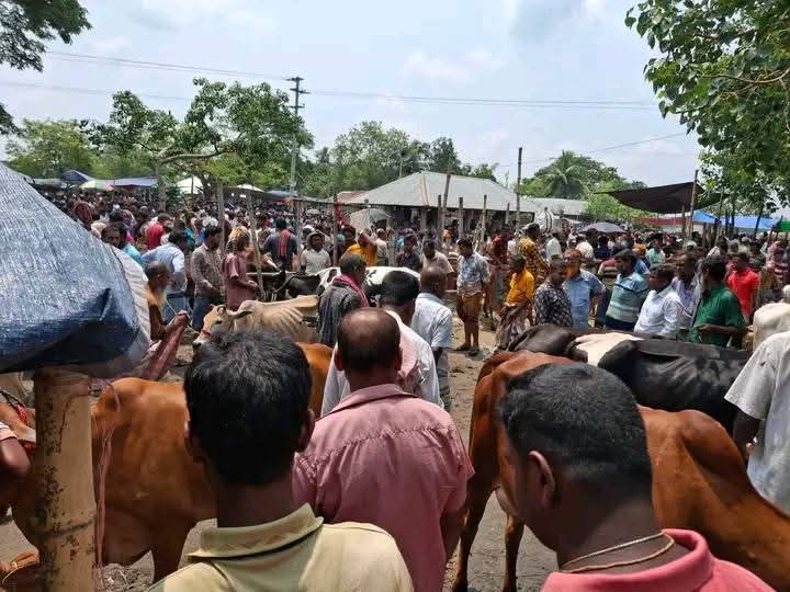 নওগাঁর আত্রাইয়ে ঐতিহ্যবাহী আহসানগঞ্জ হাটে জমে উঠেছে কোরবানি পশু কেনার ধুম।